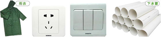 雨衣,塑料开关、插座,下水管道,人造革,脚垫,PVC塑料线管等以此类塑料制造。由于电气性能良好又有一定的阻燃特性,被广泛用于电线电缆的外皮制造。在工业领域应用广泛,特别是在对耐酸碱腐蚀要求高的地方。